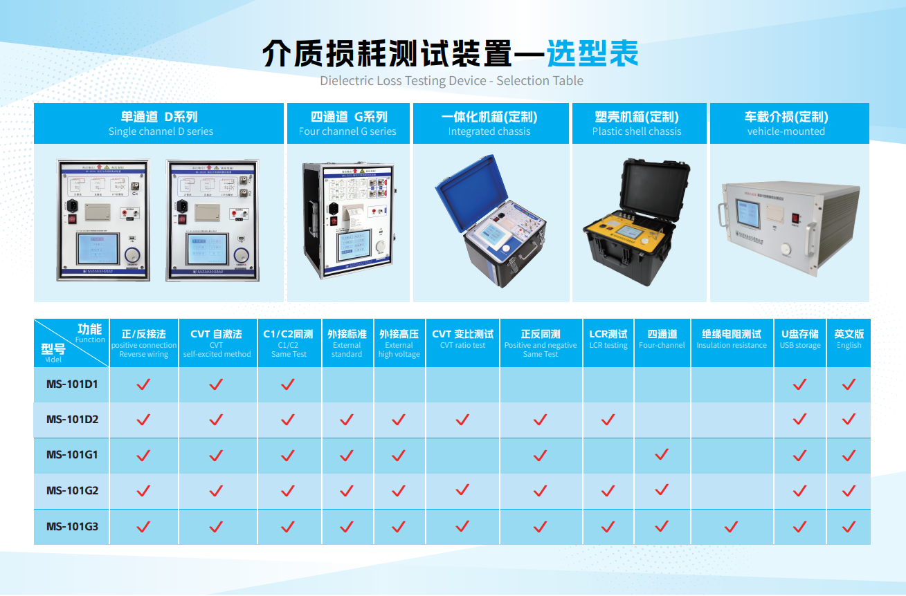 MS-101G高壓介損測試儀采用變頻電源技術,利用單片機和電子技術進行自動頻率變換、模/數轉換和數據運算,達到抗干擾能力強、測試速度快、精度高、操作簡便的功能。